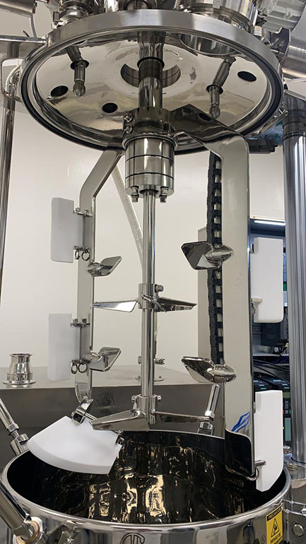 The customer needed some equipment to produce liquid-based makeup, with volumes ranging from 5 L to 100 L, under pressure and in a vacuum (-500 mbar / 200 mbar), and at room temperature. The products can reach viscosities of up 35,000 cP, meaning counter-rotating equipment is recommendable to ensure very viscous products mix efficiently.